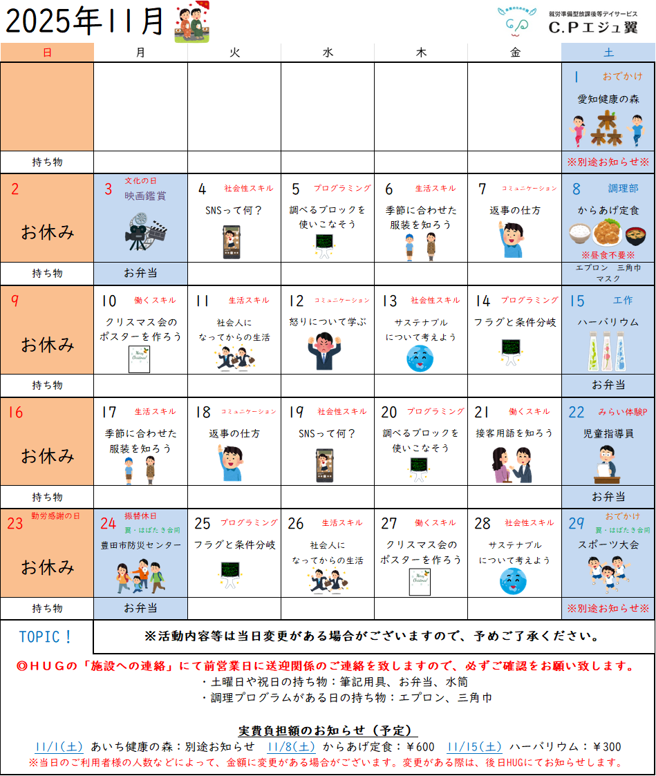 C.Pエジュ翼の、11月のおすすめプログラムをご紹介します!