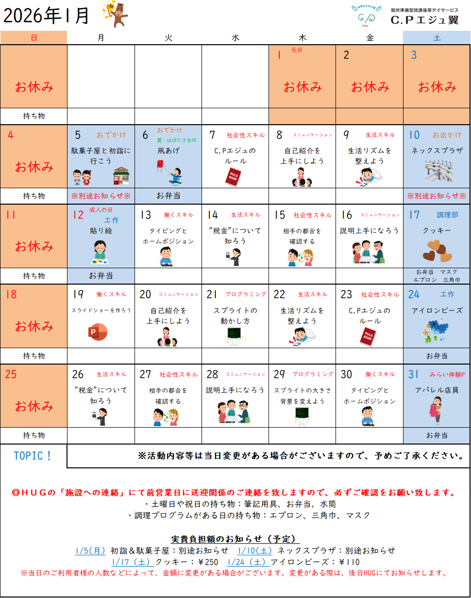 C.Pエジュ翼の、1月のおすすめプログラムをご紹介します!
