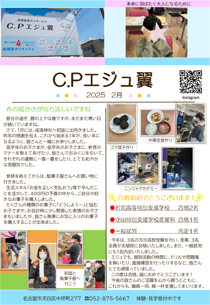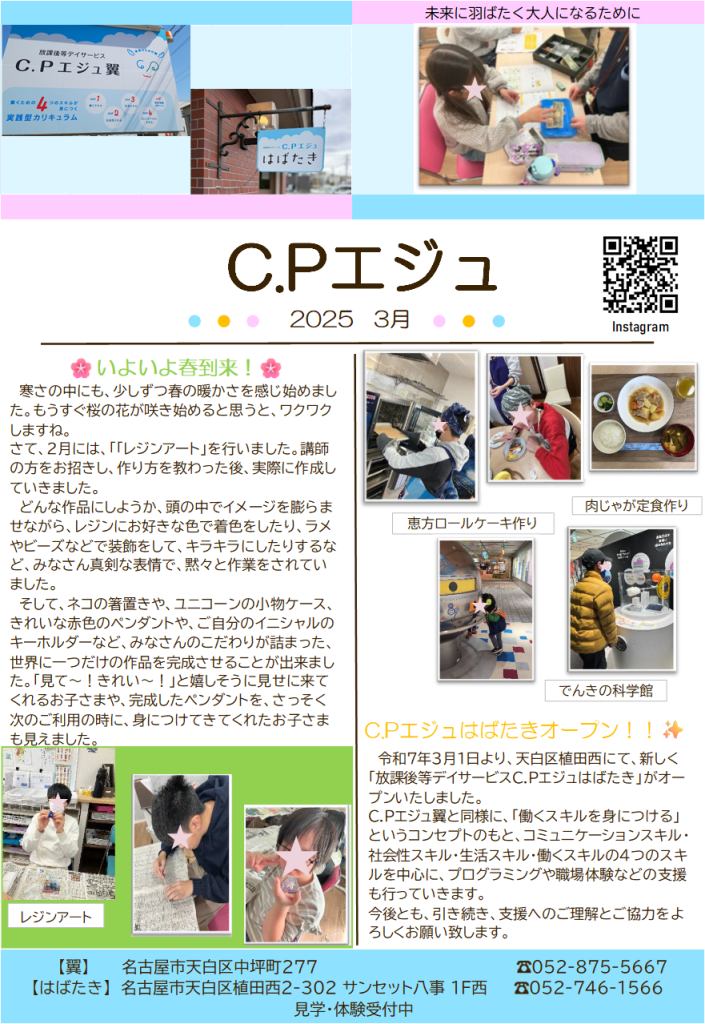 この度、3月より名古屋市天白区植田西にて、新事業所「C.Pエジュはばたき」をオープンする運びとなりました。
